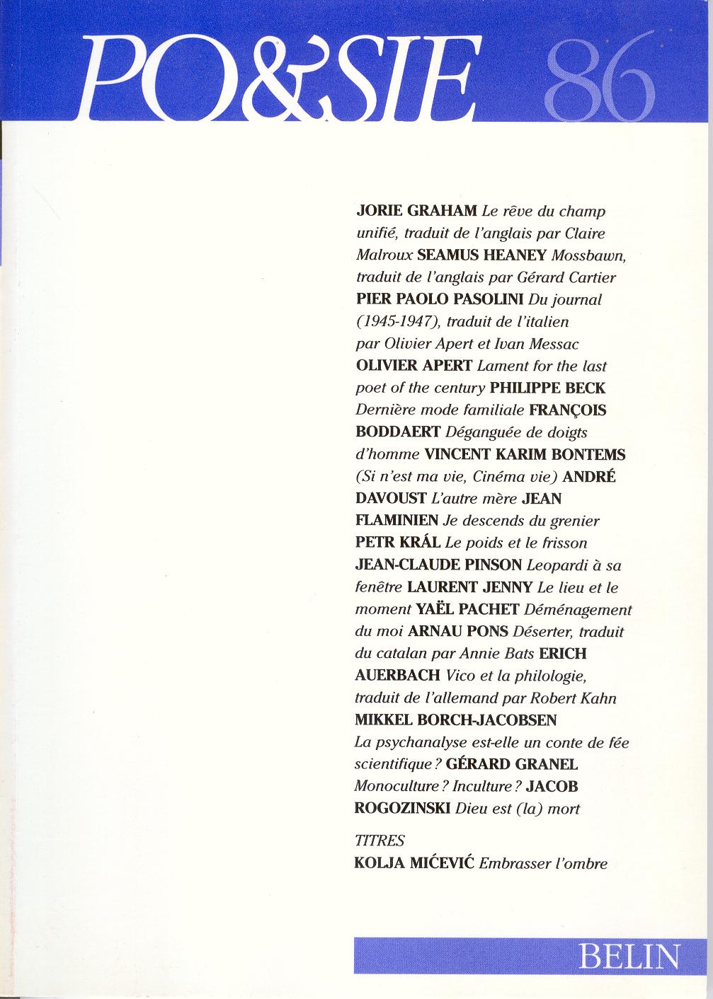 dans la revue Po&sie (n°86) : Mossbawn
