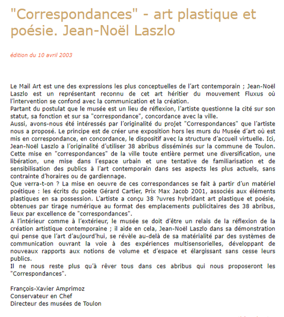 urbaine à Toulon du 8 avril au 6 mai 2003. Chaque poème,